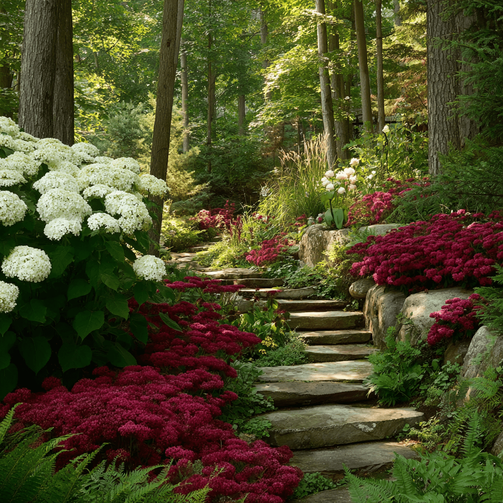 Great attention to plant choice ensures pleasing colors and textures year-round as well as varying heights and bloom times